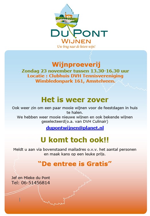 Uitnodiging Wijnproever op zondag 23 november